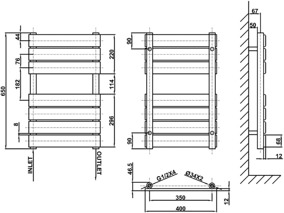 Dimensions:650x400mm(H X W),BTU Rating:1221,Pipe Centre: 480mm, Bar Quantity:7