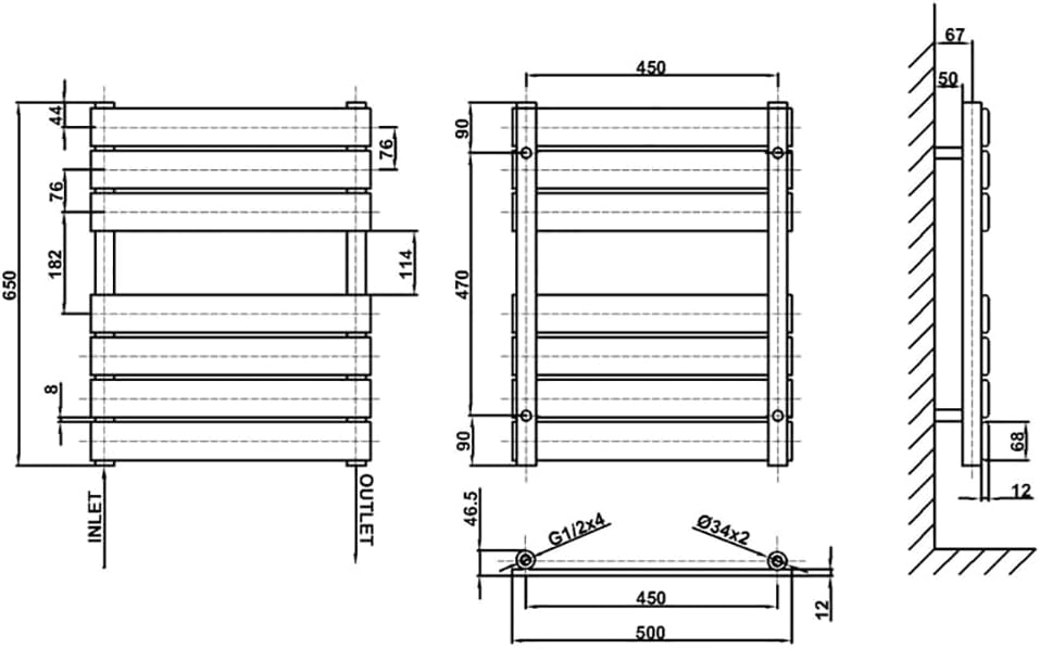 Dimensions: 650x500mm(H X W),BTU Rating:1409,Pipe Centre: 580mm, Bar Quantity:7